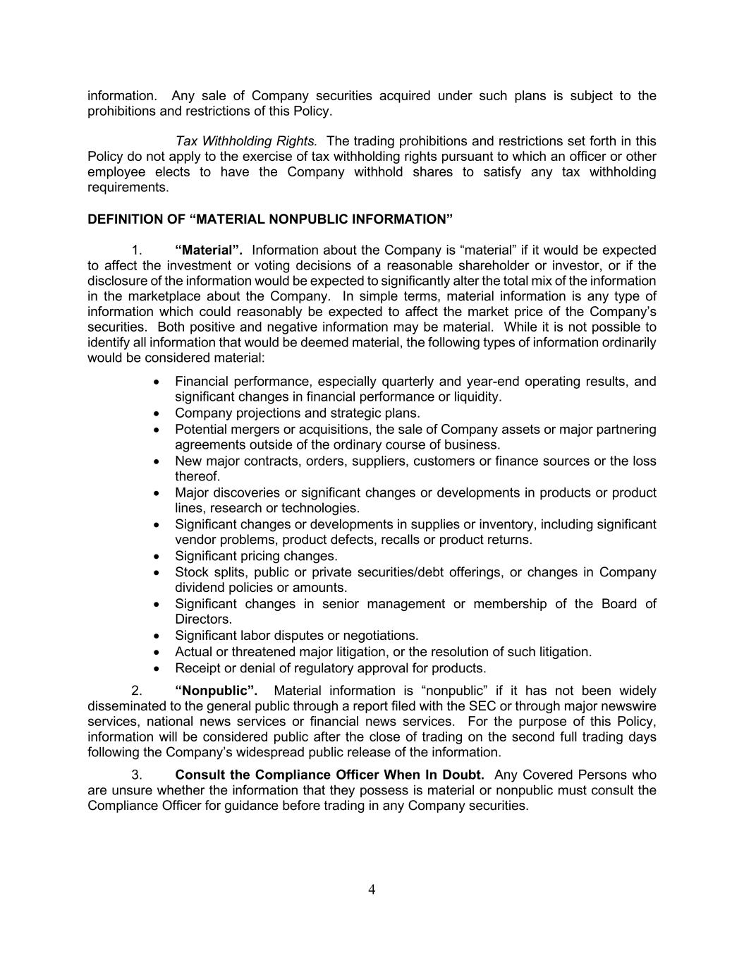 In addition, the Company relies on trade secret protection and confidentiality agreements to safeguard our interests with respect to proprietary know-how that is not patentable and processes for which patents are difficult to enforce. We believe that many key elements of our manufacturing processes involve proprietary know-how, technology or data that are not covered by patents or patent applications, including technical processes, test equipment designs, algorithms and procedures. All of our research and development personnel have entered into confidentiality and proprietary information agreements with us. These agreements address intellectual property protection issues and requires our employees to assign to us all of the inventions, designs and technologies that Company personnel develop during the course of their employment. We also require our customers and business partners to enter into confidentiality agreements before we disclose any sensitive aspects of our technology or business plans.