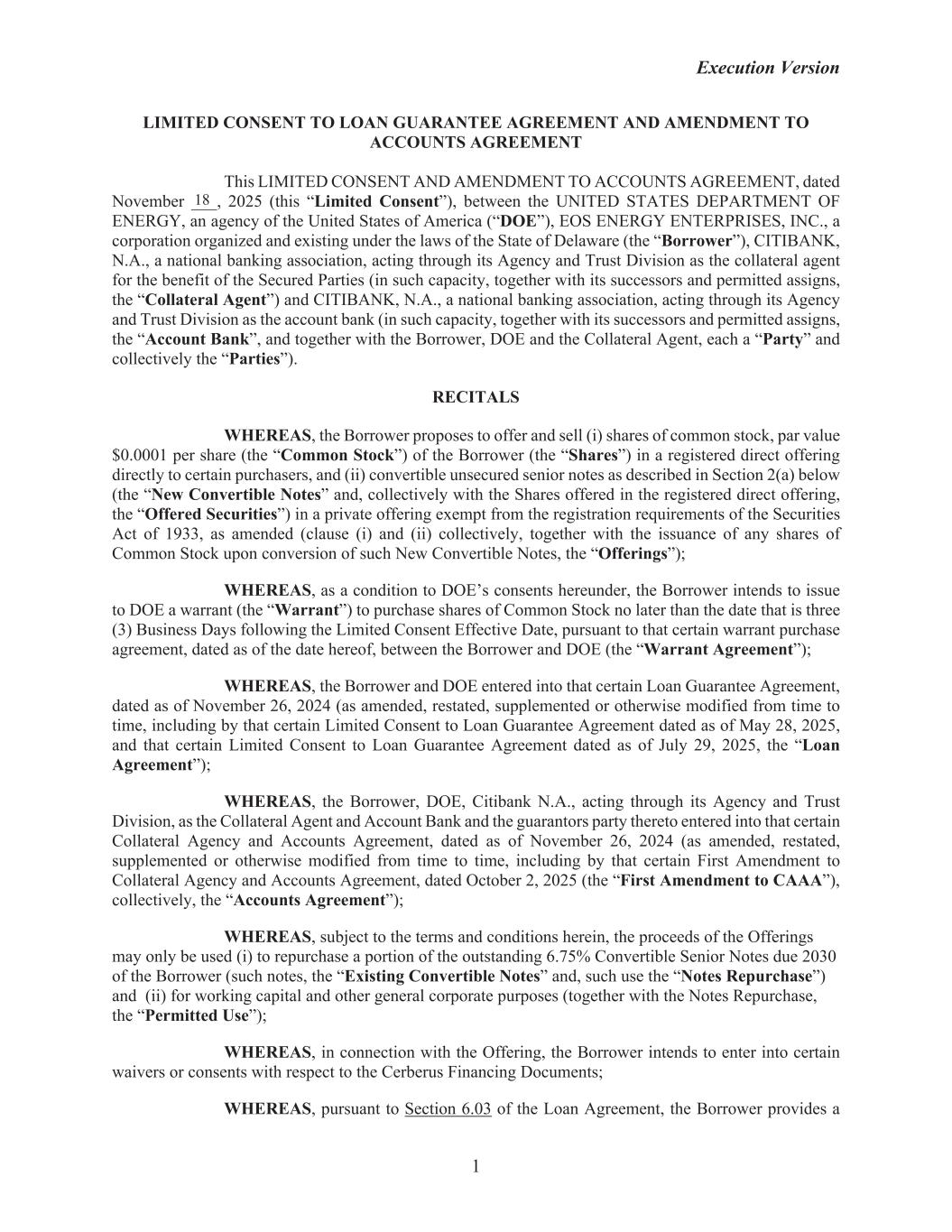 | | EOS ENERGY ENTERPRISES, INC. |