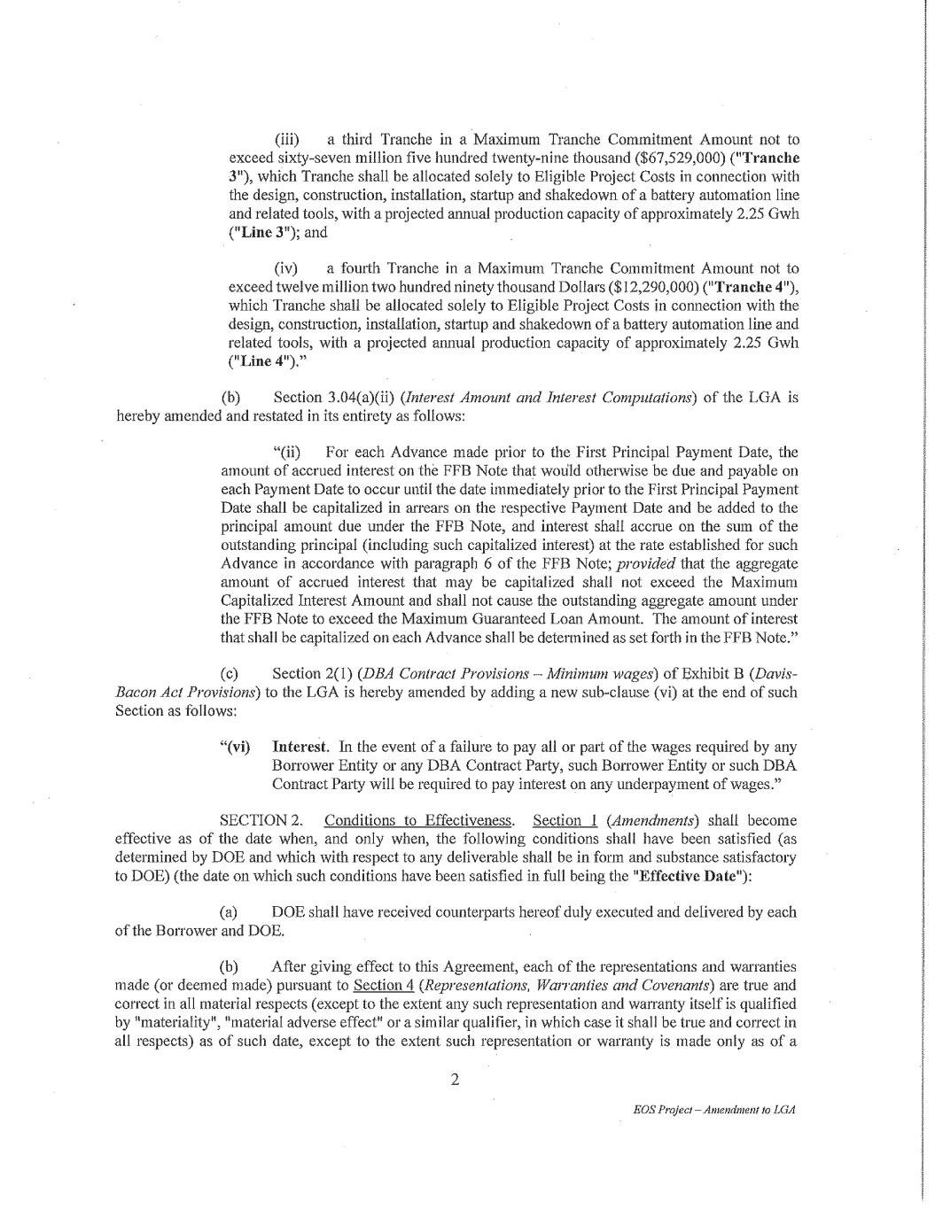 •the amount of final tax credits available to our customers or to Eos pursuant to the Inflation Reduction Act including potential impacts from any repeal or modification of the legislation;