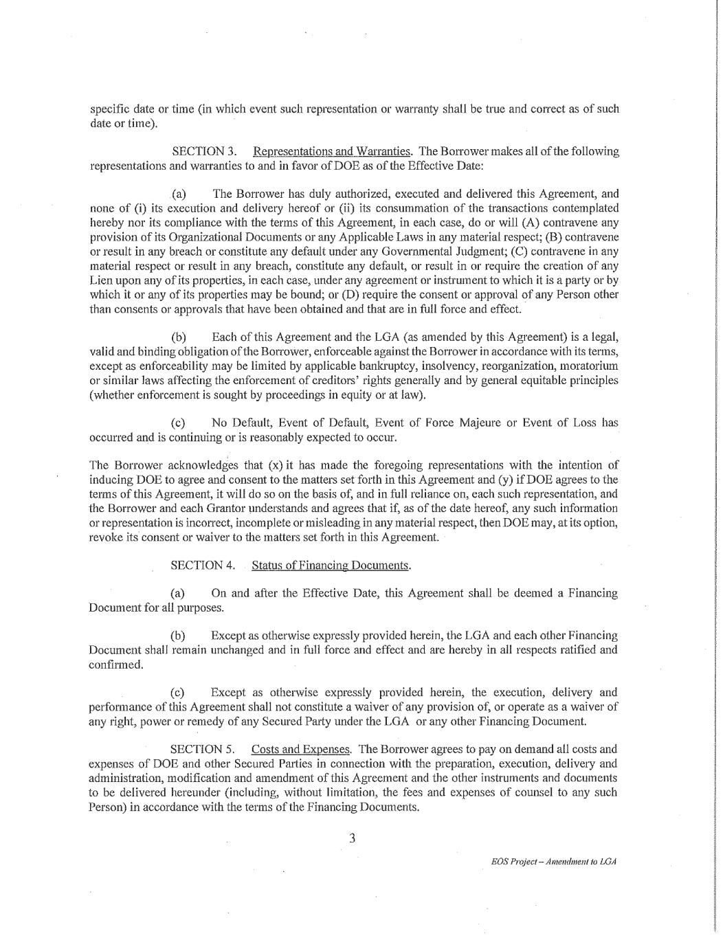•the timing and availability of future funding under the Department of Energy Loan Facility;